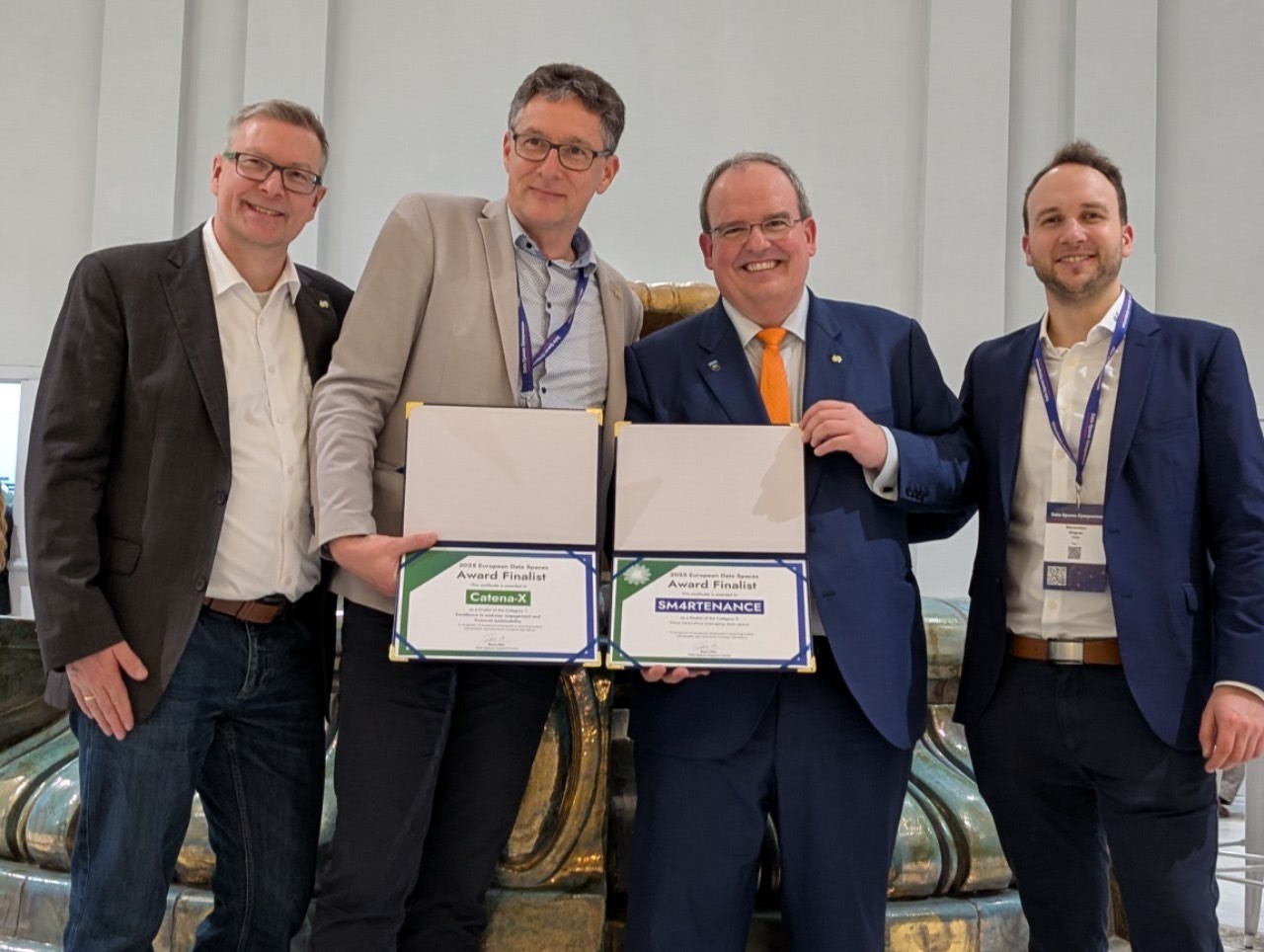 El Symposium también acogió la primera edición de los European Data Spaces Awards, impulsados por el DSSC con el apoyo de la Comisión Europea. Los galardones reconocieron a DjustConnect en la categoría de excelencia en impacto y sostenibilidad, y a sphin-X e.V. como espacio de datos emergente más innovador. Trasladamos también nuestra enhorabuena al resto de finalistas, SM4RTENANCE, proyecto en el que participamos activamente y que representa un ejemplo destacado de colaboración industrial a escala europea; Catena-X, data.gouv.fr, y DEPLOYTOUR-Deployment European Tourism Data Space.